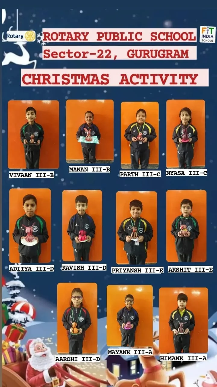Christmas brings cheer and love . Rotary Public School celebrated it with same fervour, spreading the message of love and joy among our children. The children of our school created snowman , santa's face ,reindeer and christmas tree in their craft class.